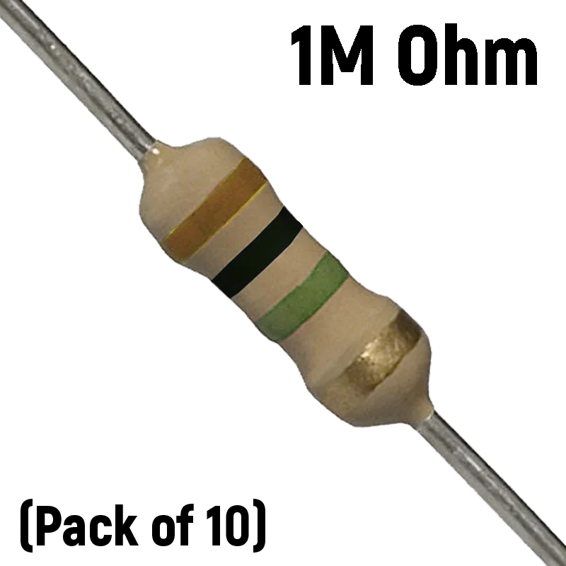 The 1M Ohm resistor is a high-value precision resistor commonly used in circuits that require limited current flow or high-resistance control, such as sensor interfaces, analog signal filtering, and timing applications. With a power rating of 1/4 Watt (0.25W) and a tight 1% tolerance, this resistor ensures stable and consistent performance.