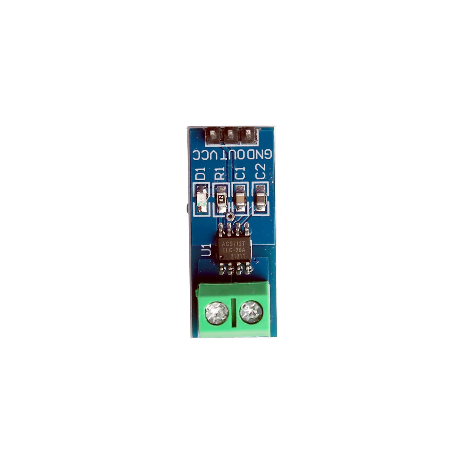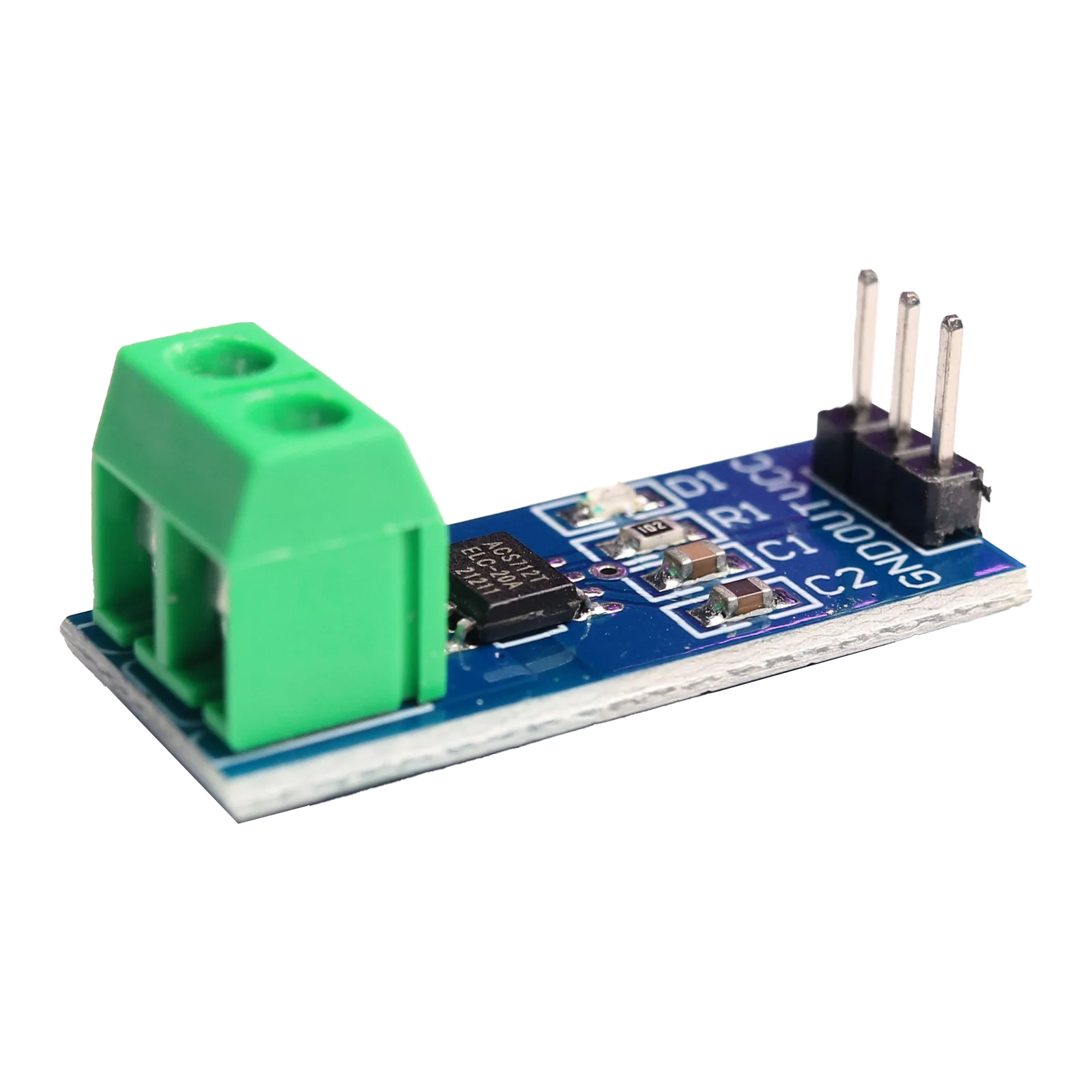 The ACS712 20A Current Sensor Module consists of a precise, low-offset, linear Hall circuit with a copper conduction path near the die’s surface. Applied current flowing through this copper conduction path generates a magnetic field in which the Hall IC converts into a proportional voltage.