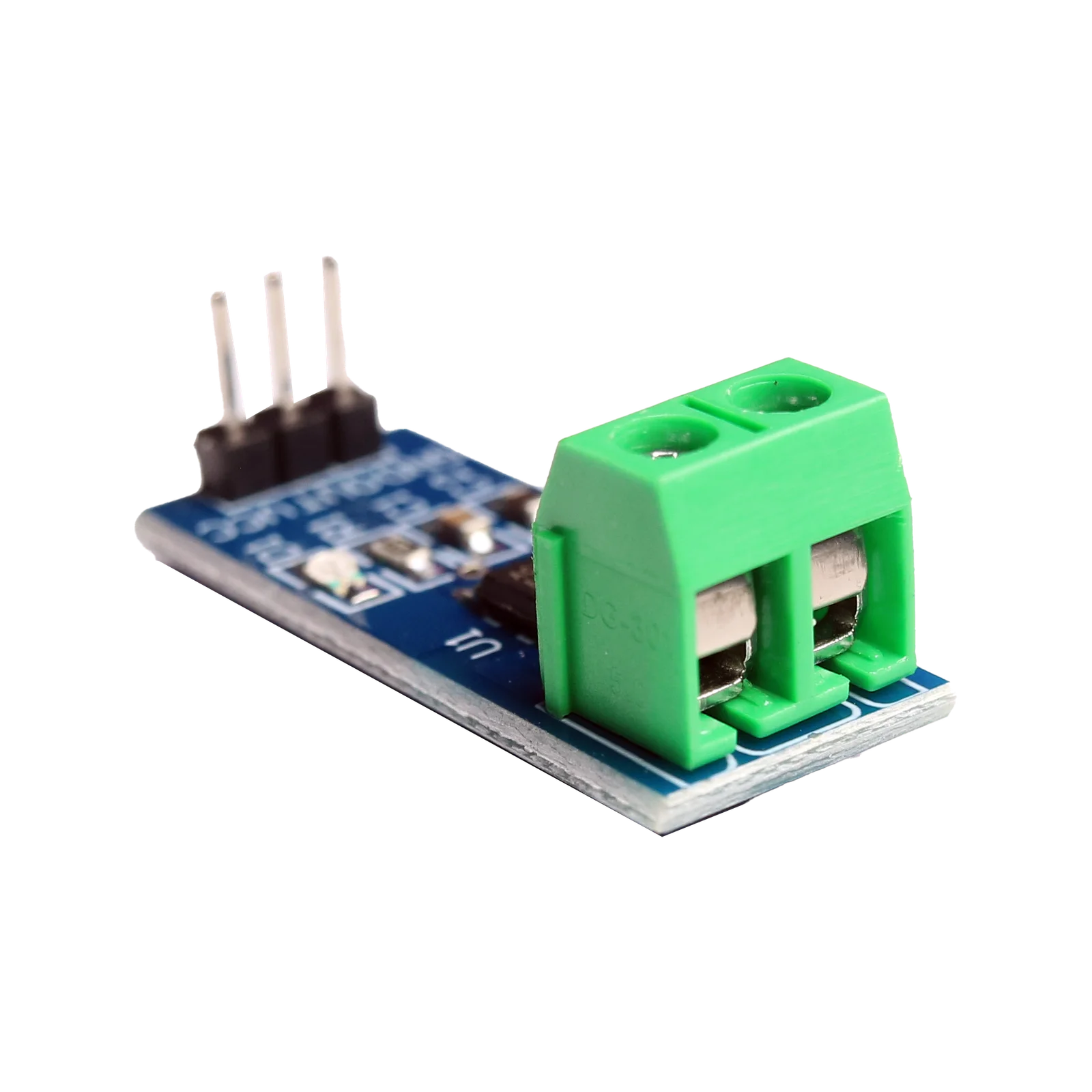 The ACS712 module has two phoenix terminal connectors (green colour ones) with mounting screws as shown above. These are the terminals through which the wire has to be passed.