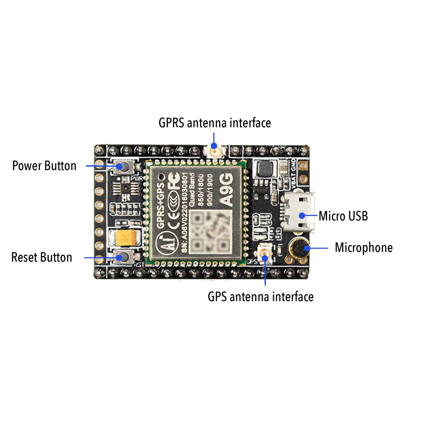 This GPRS GSM breakout board based on the AI-Thinker A9G, which is the newest GSM GRPS Quad-Band module. You can add voice, text, SMS, and data to your project with this module. It is a high-cost performance compare with SIM800, SIM900. A9 is an ideal solution for M2M applications, suitable for automotive, industrial and PDA, personal tracking, electricity environment detection, wireless POS, smart metering, and other M2M applications, to provide comprehensive GSM / GPRS text messaging, voice and data transmission services.