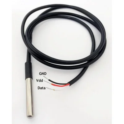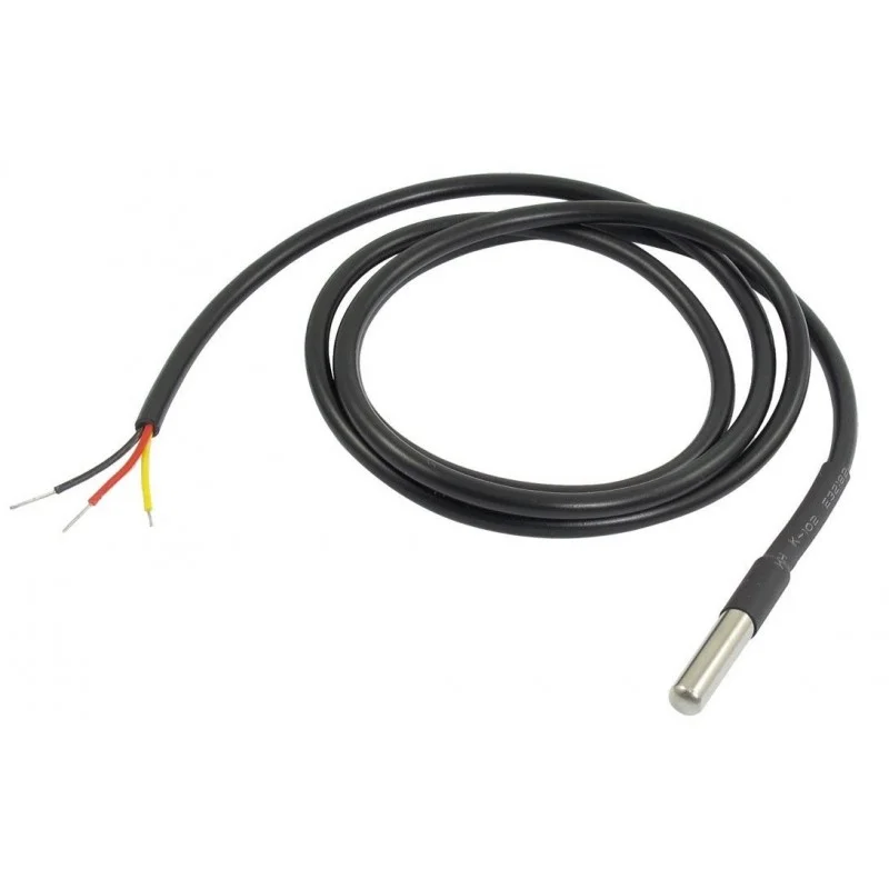 This is a 1 Meter Waterproof, sealed, and pre-wired digital temperature sensor probe based on the DS18B20 sensor. Designed for precision and durability, it is ideal for applications requiring temperature measurements in challenging environments, such as liquids or outdoor conditions. Thanks to its digital communication, the sensor ensures no signal degradation even over long distances.