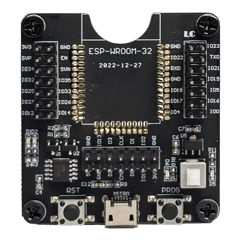 This module is suitable for testing or burning firmware to the ESP WROOM 32 chips. All IO ports have LEDs which enables this module to act as a minimum system board to test all GPIO pins. It does support a one-click firmware download function. It has a power indicator light, burning indicator light, and, serial port communication indicator light. It lead-out all IO ports, which can be used as the smallest system development board or a fixture for small-batch programming