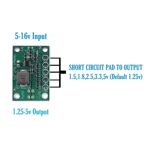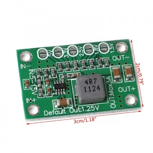 Input Voltage: Dc 5-16v. Output Voltage: 1.25v/1.5v/1.8v/2.5v/3.3v/5vdefault 1.25v. Maximum Output Current: 3a. Maximum Conversion Efficiency: 90%. Board Size: 3x2cm/1.18×0.79 Lxw. Quantity: 1 Pc. Mini Dc-dc Step Down Regulated Voltage Converter Module With Dc 5-16v Input And 1.25v/1.5v/1.8v/2.5v/3.3v/5v Fixed Voltage Output N-board Mp1495 Chip With High Power Conversion Efficiency Up To 90%, Save Energy Unique Short-connecting Voltage Adjustment Design Ensure Output Accuracy Better Performance Than The Potentiometer Type Voltage Converter Module.