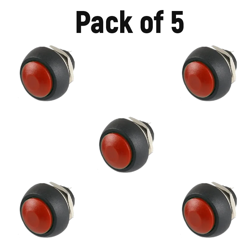Red Waterproof Push ButtonPBS- 33B 12MM 2PIN Self-Reset Mini Round (Pack of 5) Best Quality